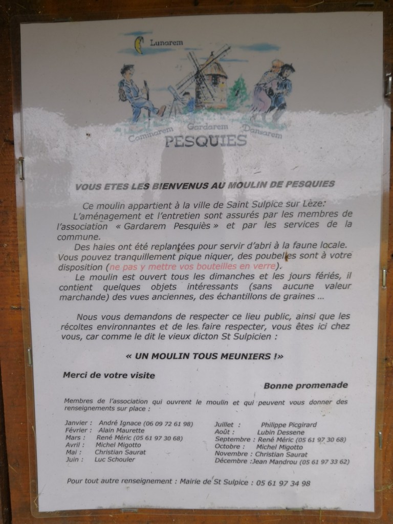 L’association « Gardarem Pesquiés », à partir de ce moment là, sans autre soutien financier que celui des St Sulpiciens et des amis de partout, a organisé des fêtes et collecté les fonds nécessaires à sa rénovation. Grâce à tous les donateurs, à des entrepreneurs locaux, à l’A.F.P.A (Association pour la Formation Professionnelle des Adultes) sous la direction du compagnon charpentier Joseph Lescot, et à l’aide technique de la Mairie, le moulin a cette apparence actuelle.