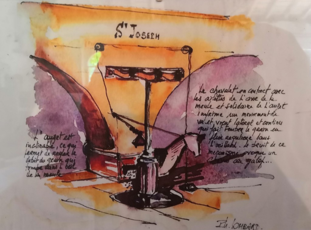 Le moulin des Bures, comme beaucoup de moulins à eau dans le Sud Ouest, est doté d’un mécanisme à roue horizontale.